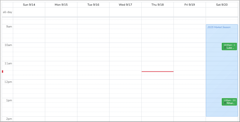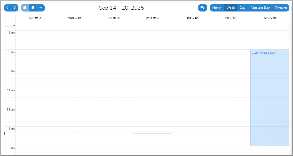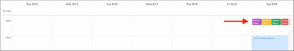 For example, below is a calendar for a Farmers Market, notice their weekly market (an activated event) is automatically showing on their calendar on Saturday 9/20.