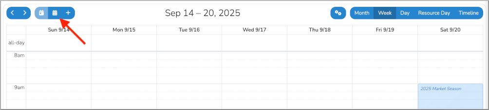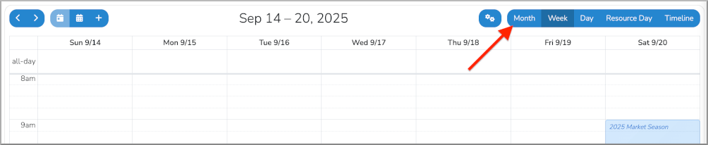 The default view is a Week View but you can easily switch to any of the other available views at the top right. Below is an example of switching to the Month View.
